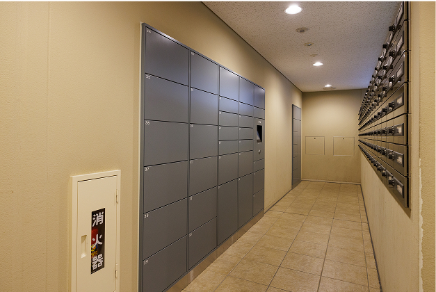 不在時にも荷物を受け取れる宅配ロッカーがあります。24時間対応なので都合のよい時間に取り出せます。玄関の開け閉めに使う非接触型キーで簡単に受け取りができます。