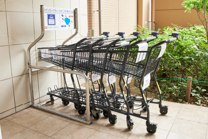 各番街にショッピングカートがあります。重い物やかさばる物を運ぶ時に便利です。